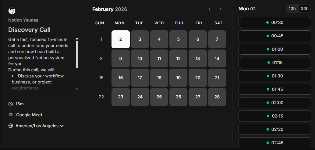 We start by understanding your workflow, challenges, and goals to design the right Notion system before building anything.